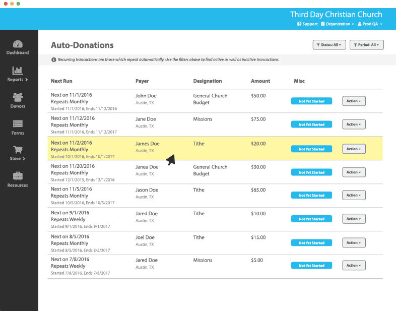 Seamlessly manage a recurring giving program.